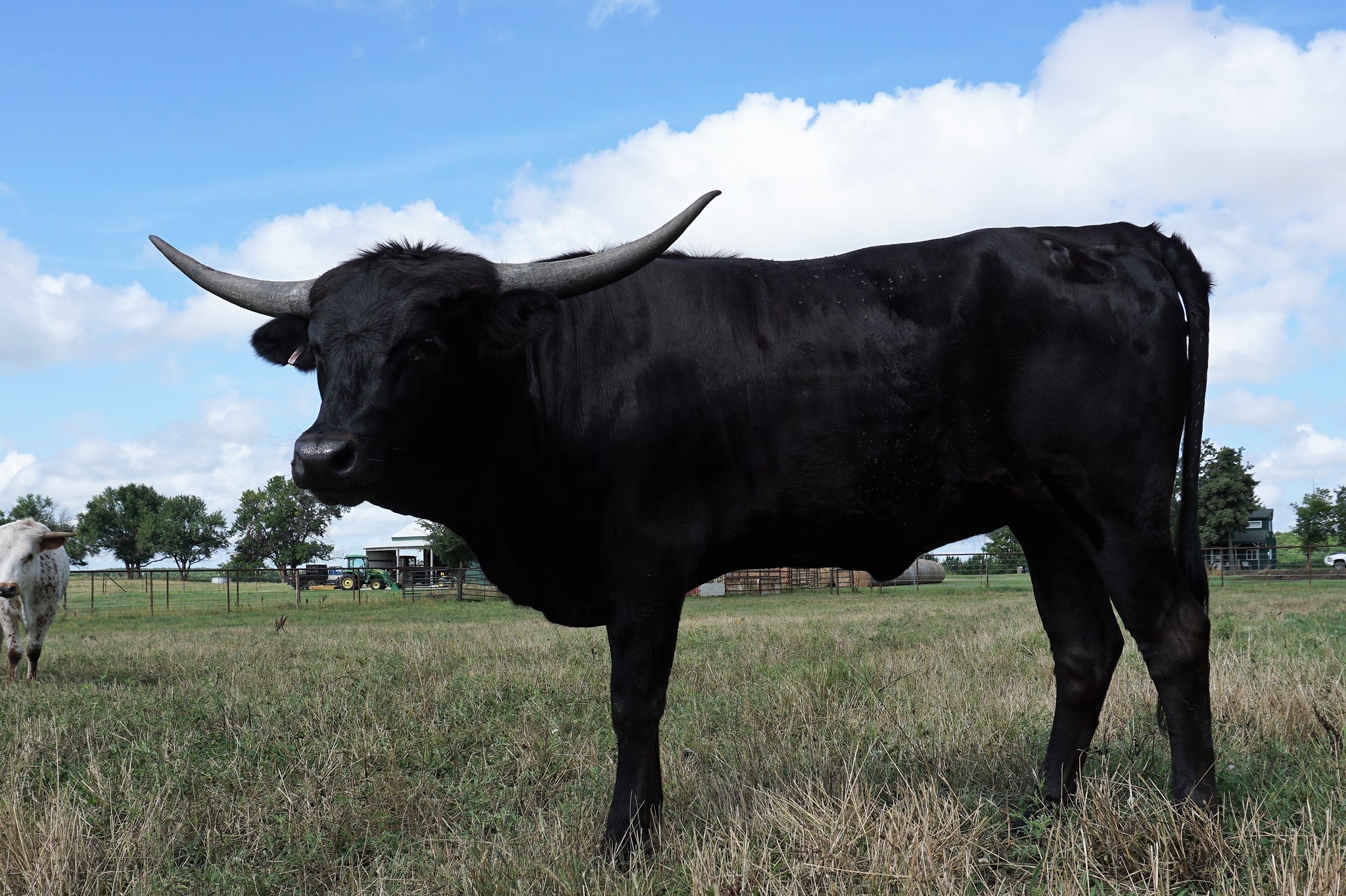 Frisky has had 3 heifers in a row! She is a super mother, raises a big healthy calf, and out produces herself!! This cow has a pedigree to wish for. Start with Saddlehorn, a homozygous bull that throws only black or black and white. She is bred with heifer sexed semen to M.C. Hangin Tuff who is 102” TTT. He is the only bull in the world to have been voted Ultimate Bull, have a sire that was voted Ultimate Bull, and a young son already voted Ultimate Bull! This will be an exciting calf! Add in Concealed Weapon for consistent horn production, and RC Pacific Mermaid for big-horned, early growth. She is a genetic powerhouse who has proven herself to be fertile through natural cover and two successful AI births. She has outproduced herself every time! She is bred with heifer sexed semen to M.C. Hangin Tuff who is 102” TTT. He is the only bull in the world to have been voted Ultimate Bull, have a sire that was voted Ultimate Bull, and a young son already voted Ultimate Bull! This will be an exciting calf!